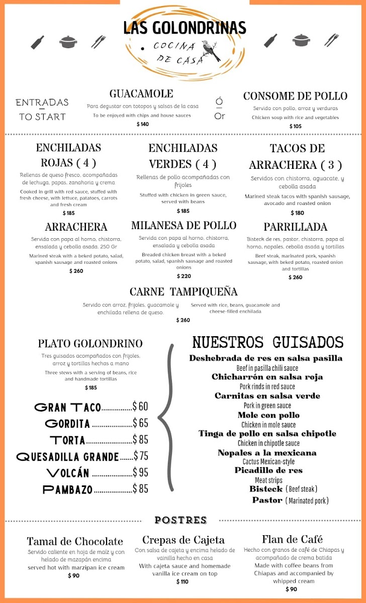Friendly service complements the experience, making Las Golondrinas not just a meal, but a warm, welcoming atmosphere that invites you back for more. Whether you're after gorditas or chicken enchiladas, every dish promises to delight.